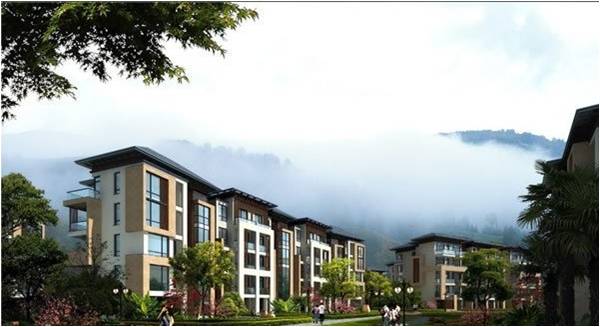 項目定位:為世界級山地溫泉養生棲息地。方案規劃與建筑的原則是先有“景”,再有“觀”——先有“涵谷” 八景、“四洲”、“四谷”,再有觀景的仙居八境“風花雪月”、“ 詩詞歌賦” 。在建筑設計方面,塑造新亞洲建筑風情,戶戶生態全景,戶戶溫泉入室,產品包括單層、雙層養生別墅、四層電梯假日公寓、四層一梯四戶墅景公寓、三層花園洋房以及五星級產權式度假酒店等,構成一個豐富的中式住宅體系,營造一片風花雪月的人間仙境。